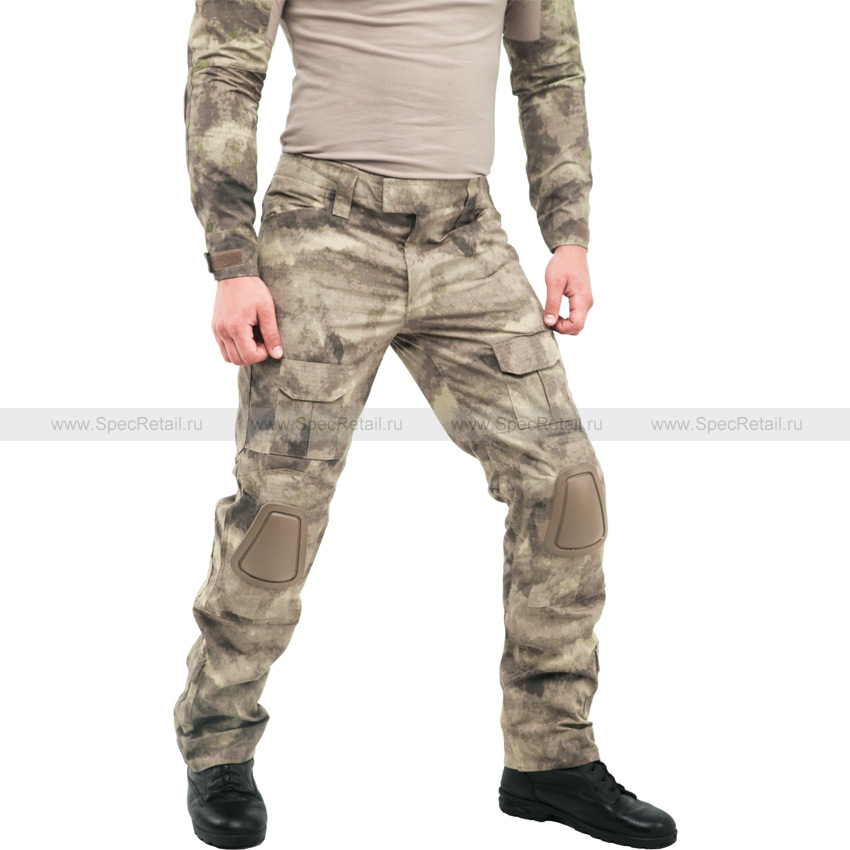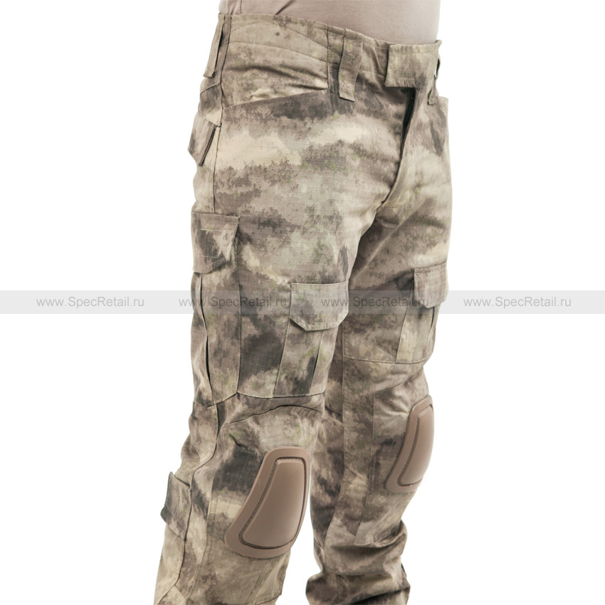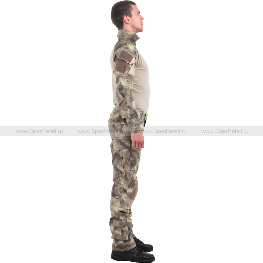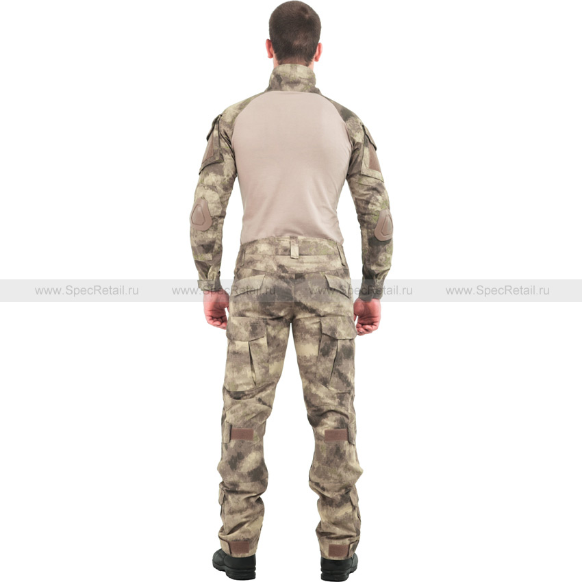 У кофты есть воротник-стойка на молнии. На рукавах нашиты карманы (по одному на каждом); карманы закрываются на клапан с липучкой, на них нашиты велкро-платформы для крепления патчей. На штанах также расположены карманы (всего десять), а именно: два стандартных боковых кармана (в них расположены потайные ремни для регулировки длины штанин), далее идут еще два кармана спереди, четыре сзади и пара на голени. Все карманы разного размера, восемь из которых закрываются на велкро-липучку. В коленях и на голени штаны можно затянуть.