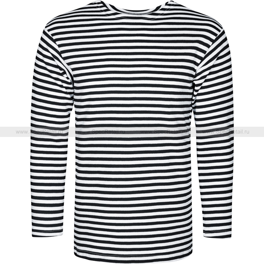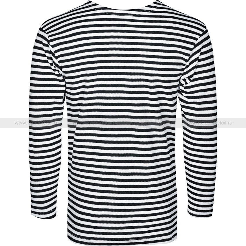 Тельняшка полушерстяная, утепленная с длинными рукавами, эффективно держит тепло. Практически не садится при стирке. Цвет полосок – чёрный.