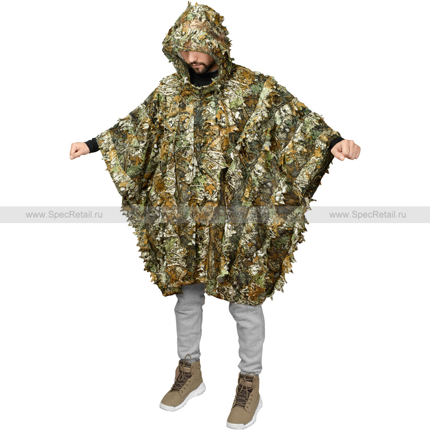 Плащ прямоугольной формы с отверстием для головы и капюшоном для маскировки бойца в лиственном лесу. Выполнен на сетчатой основе для лучшей вентиляции. Имеется маскировочная бахрома. Такой плащ станет отличным выбором для камуфляжа на страйкболе или охоте.