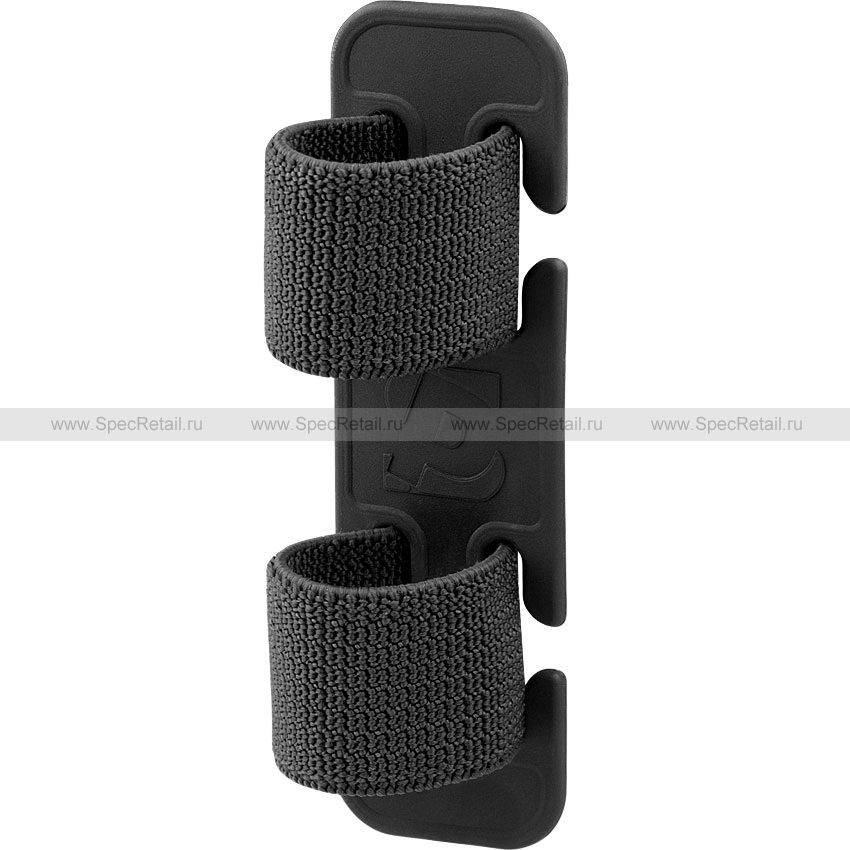 Держатель MOLLE Fix представляет собой пластиковую основу с двумя встроенными эластичными петлями. Резинки позволяют удерживать различные продолговатые предметы снаряжения: фонарь, сигнальная ракета, мультитул и т.д. Минимальный диаметр удерживаемых петлями предметов составляет 25 мм. Держатель устанавливается на любом снаряжении со стропами MOLLE – это может быть разгрузочный жилет, тактический пояс, набедренная платформа и т.п.