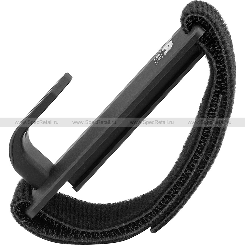 Крюк закрепляется на плечевой лямке разгрузки или бронежилета посредством стропы с застёжкой на велкро липучке (микрокрючки+микропетли).
