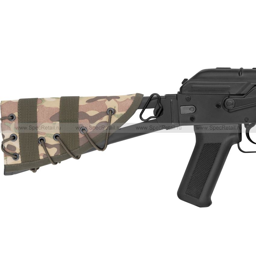 Практичный аксессуар на приклад боевого, охотничьего или страйкбольного оружия. Накладка изготовлена из качественного полиэстера.