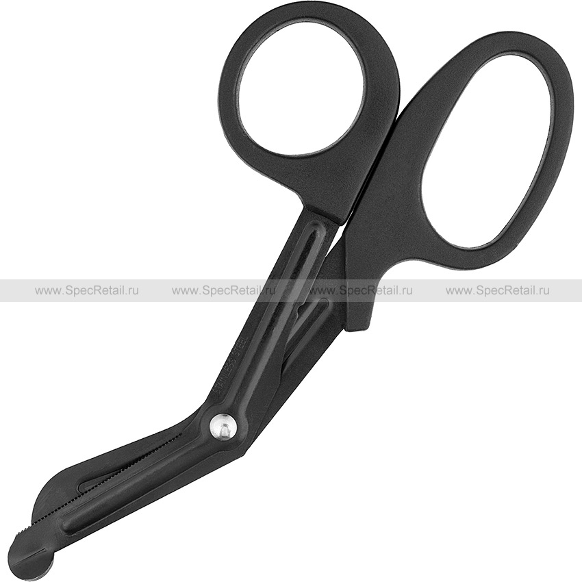 Атравматические ножницы для полевой аптечки. Изделие представляет собой изогнутые медицинские ножницы, которые позволяют аккуратно и быстро разрезать элементы одежды и снаряжения, когда необходимо оказать первую помощь раненому бойцу.