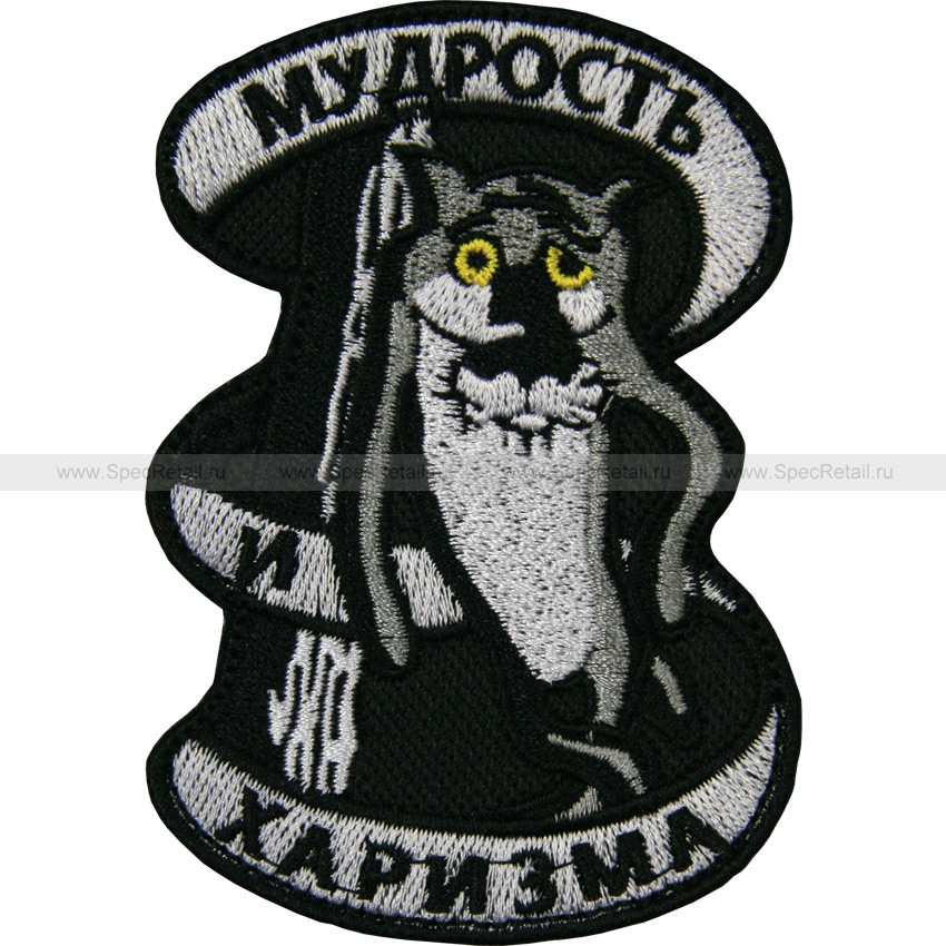Шеврон текстильный "Мудрость и харизма", черный, 6.8 x 9.8 см