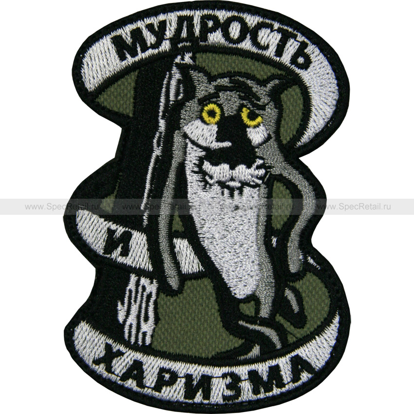 - Шеврон текстильный "Мудрость и харизма", олива, 6.8 x 9.8 см