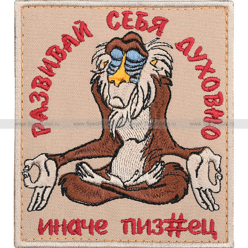 Патч о важности и стремлении к духовному развитию, без которого невозможно совершенствование человека как личности. Чёткая и контрастная вышивка изображения и надписи на фоне в песочной расцветке. Велкро липучка (лента с микрокрючками) на обратной стороне служит для закрепления патча на одежде, рюкзаке или любом другом снаряжении.