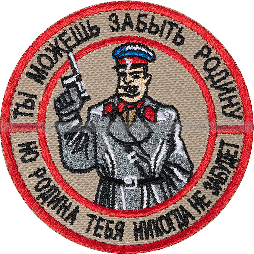 - Шеврон текстильный "Ты можешь забыть Родину, но Родина тебя никогда не забудет", диаметр 9 см