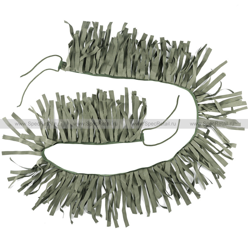 Лента для маскировки оружия. Превосходно сочетается со всеми видами страйкбольного оружия. Конструкция ленты представляет собой эластичную резинку, обшитую бахромой из нарезанной ткани в цвете олива. Резинка надежно фиксируется на оружии с помощью завязок, расположенных по краям ленты, благодаря чему достаточно плотно прилегает к оружию.
