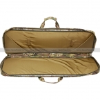 Текстильный кейс чехол для транспортировки оружия. Изделие имеет одно отделение, в котором можно разместить страйкбольный привод, огнестрельную винтовку, охотничий карабин длиной до 100 см. Чехол застёгивается на двухстороннюю молнию, которая позволяет максимально распахнуть изделие – это так называемое чемоданное раскрытие или раскрывание на манер книги. На фронтальной стороне есть наружный карман на молнии, в который можно положить небольшие предметы, к которым важно иметь быстрый доступ.