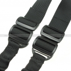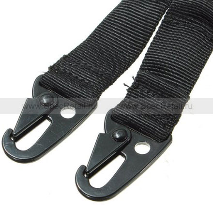 Удобный двухточечный оружейный ремень. Снабжен металлическими карабинами. Имеет упругие, эластичные вставки перед карабинами, которые амортизируют оружие, смягчая нагрузку на шею. Ремень регулируется по длине (максимальная длина более 1.5 м), пошит из прочного нейлона, износостойкий.