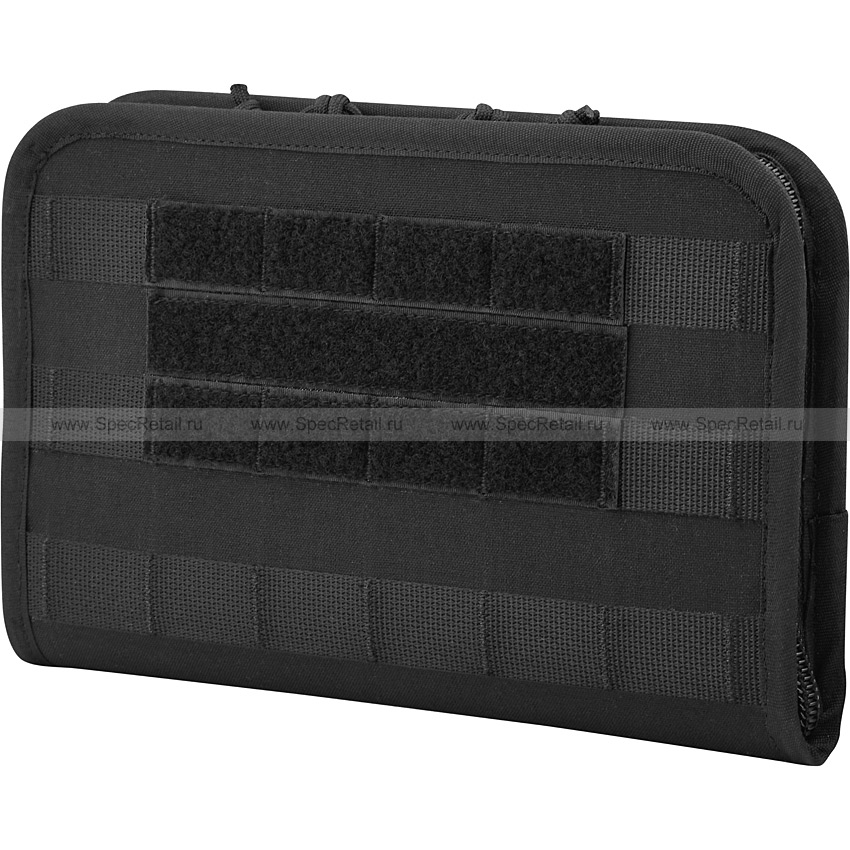 Сумка-планшет выполнена из прочного и водонепроницаемого нейлона. Снаружи на лицевой панели планшета нашиты ряды MOLLE ячеек, поверх которых можно закрепить совместимое снаряжение (подсумки, навесные аксессуары и т.д.), а также есть велкро панели для патчей и знаков различия. На обратной стороне корпуса изделия пришиты стропы МОЛЛЕ для закрепления на совместимом снаряжении с соответствующим интерфейсом.