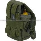 На обратной стороне корпуса изделия пришиты две стропы МОЛЛЕ, с помощью которых подсумок можно закрепить на разгрузочном жилете, бронежилете, тактическом поясе или любом другом MOLLE совместимом снаряжении.