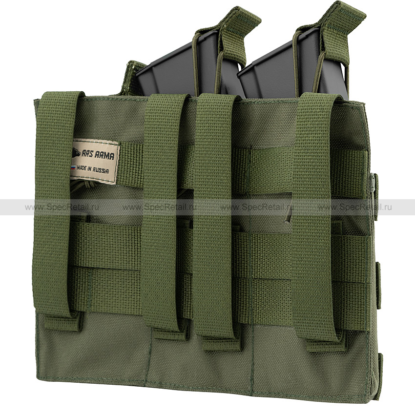 - Подсумок на 3 магазина АК или M4, быстрый доступ (Ars Arma) (Olive)