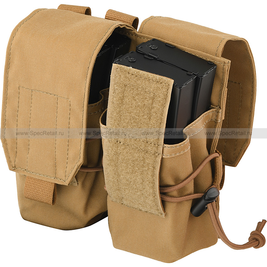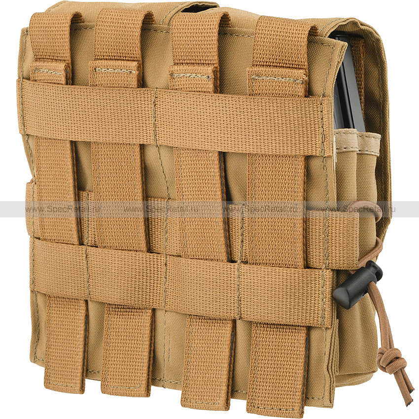 Подсумок MOLLE для четырёх магазинов М4/М16 или аналогичных по габаритам. Подсумок выполнен из прочной нейлоновой ткани в песочной расцветке. Подсумок имеет два отделения, в каждом из которых можно разместить по два запасных магазина.