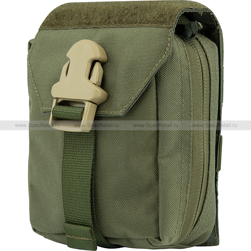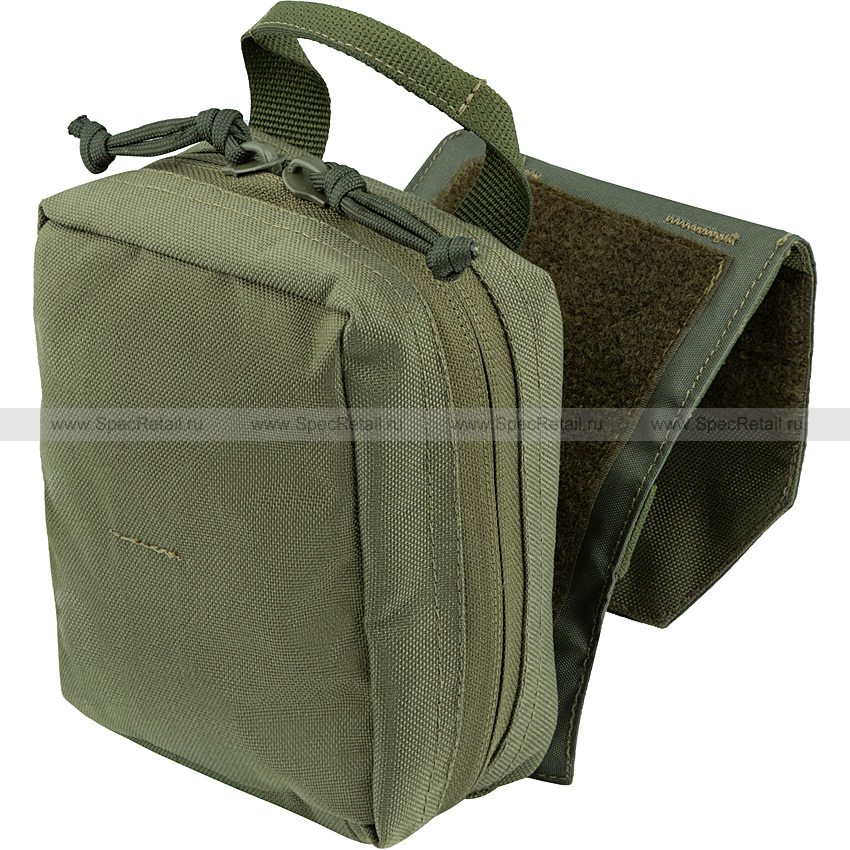 Отрывной подсумок для организации полевой аптечки. Медикаменты и вспомогательный инвентарь размещаются в одном отделении подсумка, внутри которого нашито несколько эластичных лент и есть карман для чёткой организации. Подсумок застёгивается на молнию с двумя бегунками. На бегунках есть завязки для удобства хвата.