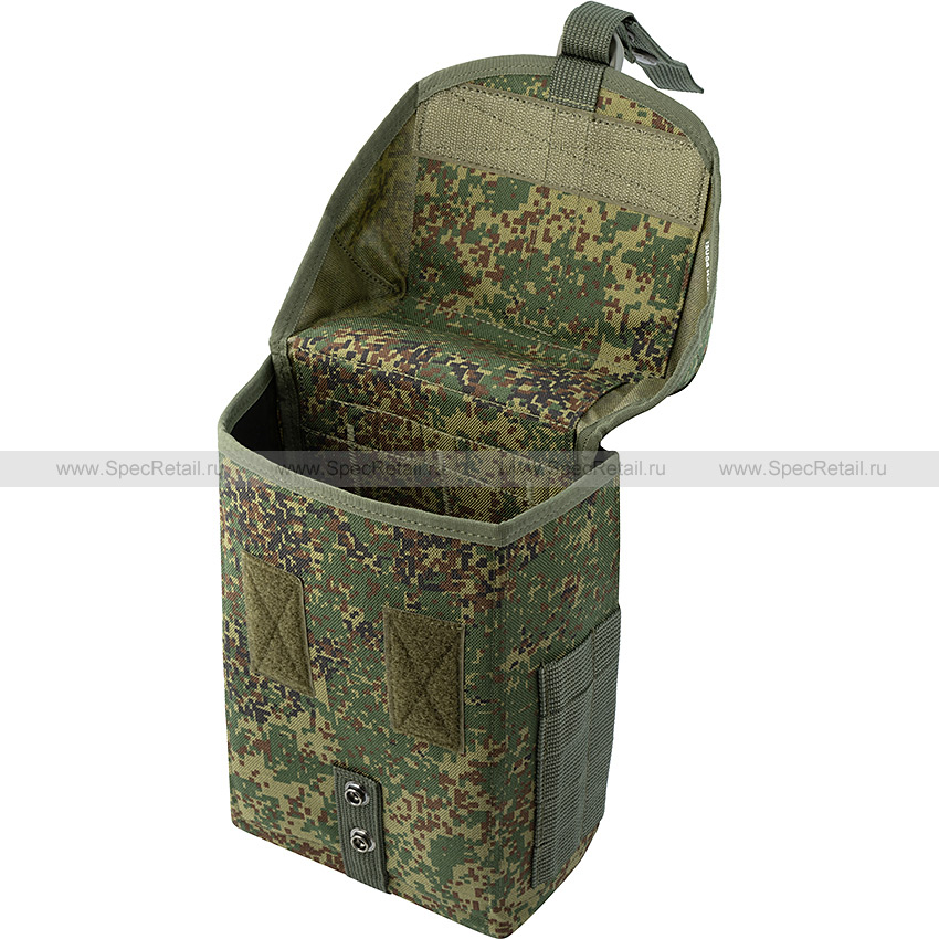 Подсумок для размещения и переноски патронной коробки, в которой содержится патронная лента для пулемёта. Изделие имеет полужёсткие стенки, а на боковых гранях с внутренней стороны по всей высоте пришита пластиковая пластина, благодаря чему представленная сумка короб отлично держит форму вне зависимости от того, насколько она заполнена.
