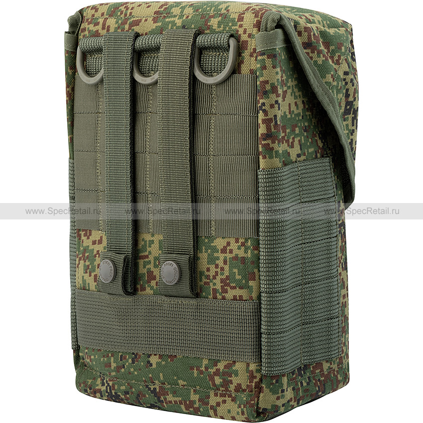 Интерфейс M.O.L.L.E. в виде двух вертикальных строп, пришитых на обратной стороне корпусе изделия, позволяет закрепить сумку на любом снаряжении с MOLLE системой крепления. Кроме того. сзади на сумке в верхней части есть три пластиковых D-образных кольца, с помощью которых возможно крепление к ременно-плечевым системам (РПС) или отдельное ношение на плечевых ремнях. Снаружи на тыльной стороне и на боковинах подсумка нашиты ячейки МОЛЛЕ, пропустив через которые соответствующие стропы, можно навесить дополнительные элементы снаряжения.