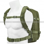 На лицевой стороне корпуса нашиты MOLLE ячейки, позволяющие закрепить на рюкзаке дополнительное навесное снаряжение (подсумки, держатели для предметов и др.), которое, например, не поместилось на разгрузочном жилете. Имеется велкро панель для закрепления патчей и шевронов, а также эластичный шнур с фиксатором – для коврика, пенки, дождевика.