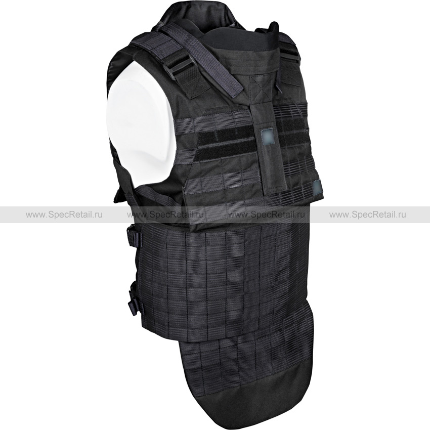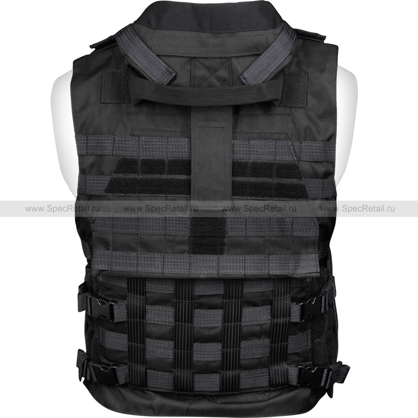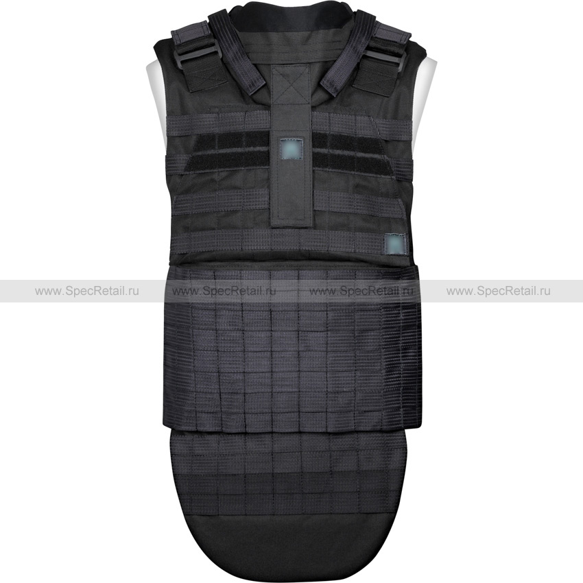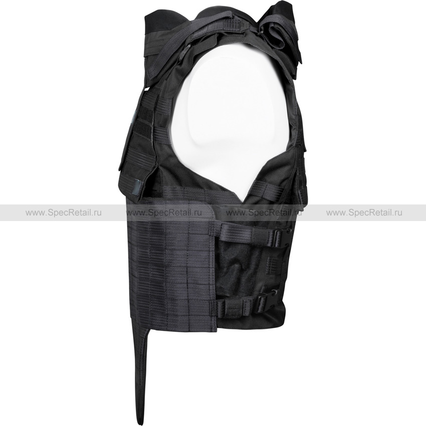 Защитный чехол под бронежилет, который также способен выполнять и роль разгрузки за счёт нашитых по всему корпусу жилета ячеек PALS/MOLLE для крепления совместимого снаряжения.